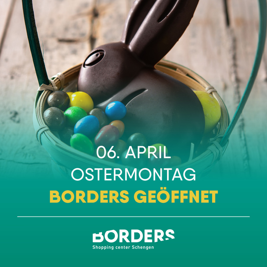 An Ostermontag, dem 6. April, ist Ihr Einkaufszentrum BORDERS von 7:30 bis 19:00 Uhr geöffnet. 🐰