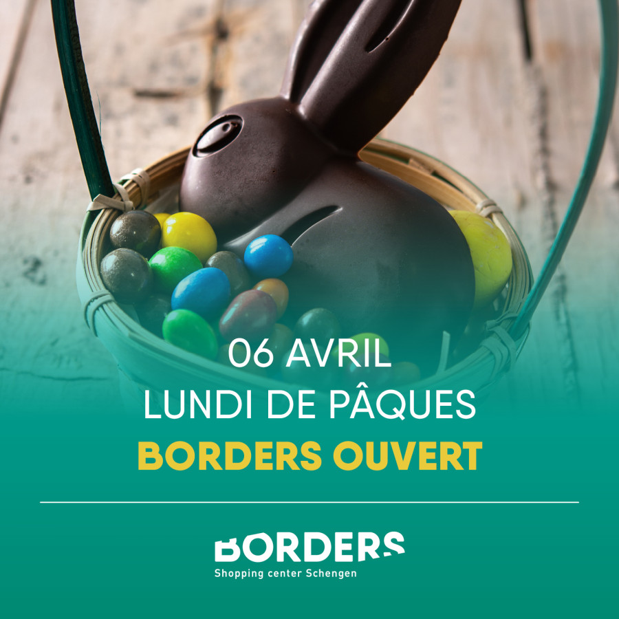 À l'occasion du lundi de Pâques, votre centre commercial BORDERS sera ouvert ce 6 avril de 7h30 à 19h. 🐰